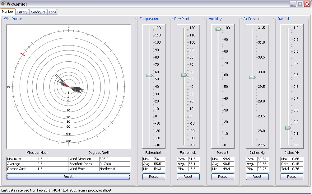 The software you use is at your discretion, but I have been working together with the creator of WxMonitor, Karl Uppiano, to improve the program with its ability to interact with and use 1-wire devices, by providing data from my station while testing the use of these sensors and calibrating them correctly. Great to be able to communicate directly with the programmer of the software, for sure. Thanks, Karl. Here’s a link to his Website: WxMonitor. This software is great in that it also can be configured to transmit data to APRS, via TCP/IP. I have it configured as such, and I use it as a “home station” when not being used mobile.