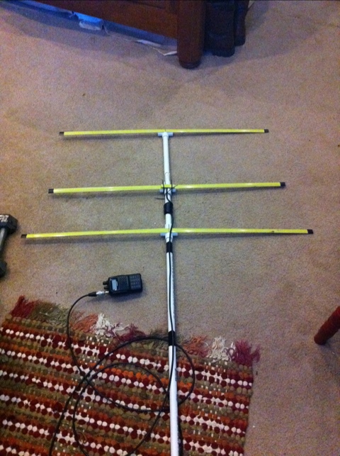 That’s it! I opted to keep the extra few feet of PVC on the bottom, so that way I can hold it under my arm and keep both hands free to adjust my radio, write things down, or whatever. You could cut it off shorter to use as a “hand held” beam. Here’s what mine looks like. It’s great, because you can take it with you in the car; just toss it in and don’t worry if the elements bend–they’ll snap right back!